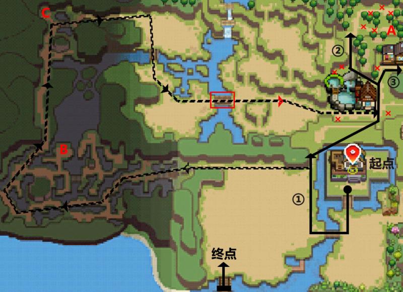 红□ 表示特殊地区 ,虚线表示可以按照个人安排更改路线,甚至有时候容不得你拖延,然而我经常看到有些萌新抱怨道 :不知道怎么赚钱、地图布局不合理啊(╯°Д°)╯︵┻━┻……等等 ,为了帮助广大玩家,有些刷新点受每日幸运值和拾荒等级影响;